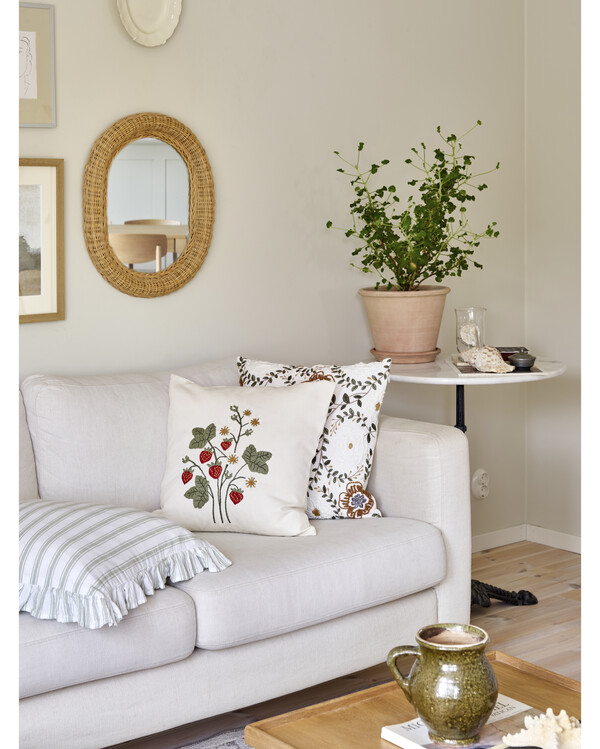 Kissenbezug mit gesticktem Erdbeermotiv