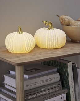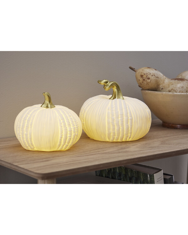 Pumpkin ist in zwei verschiedenen Größen erhältlich, sodass du mehrere ganz einfach miteinander kombinieren kannst, um einen persönlichen und harmonischen Look zu schaffen. Für den Innenbereich gedacht und perfekt als saisonale Dekoration oder ganzjährige Einrichtung geeignet.